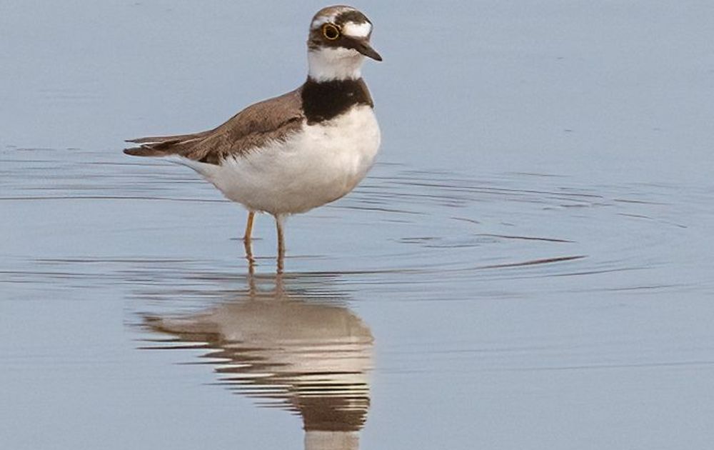 Het was nagenoeg windstil en daardoor kon ik deze kleine plevier goed met zijn reflectie in het water fotograferen. Door de grote afstand moest ik mijn telelens 200-500mm gebruiken.