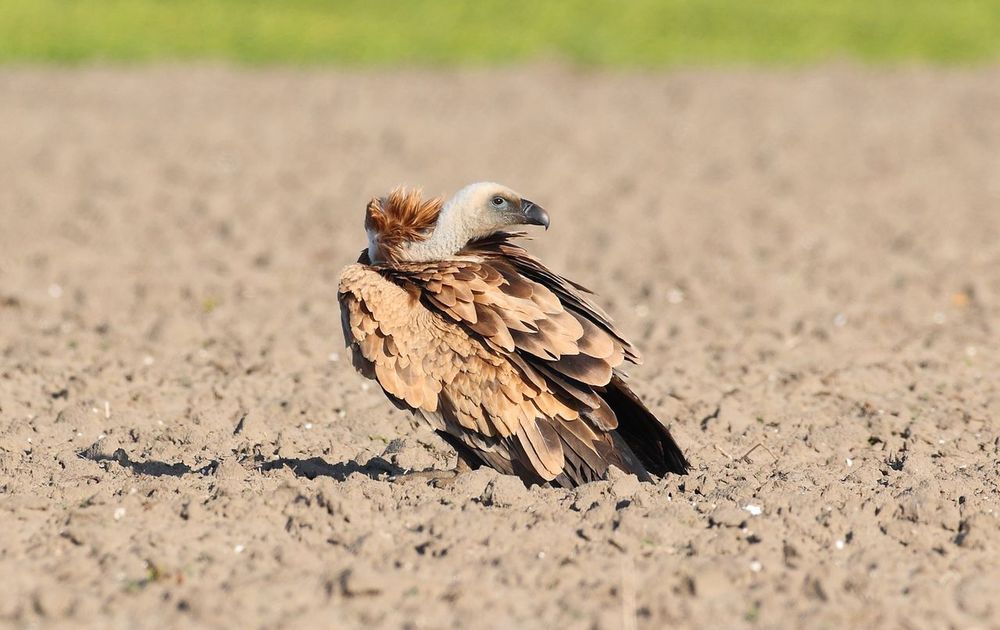 Tijdens de Pinksteren was de Vale Gier nog aanwezig op het eiland. Meermaals heb ik de prachtige roofvogel bezocht. Op een zomeravond zat hij lekker te poetsen op een akker.