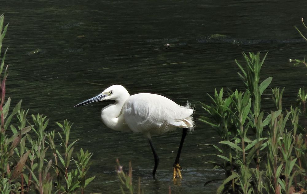 En daar zagen we hem dan, de kleine zilverreiger, tussen het riet en struiken verschijnen.