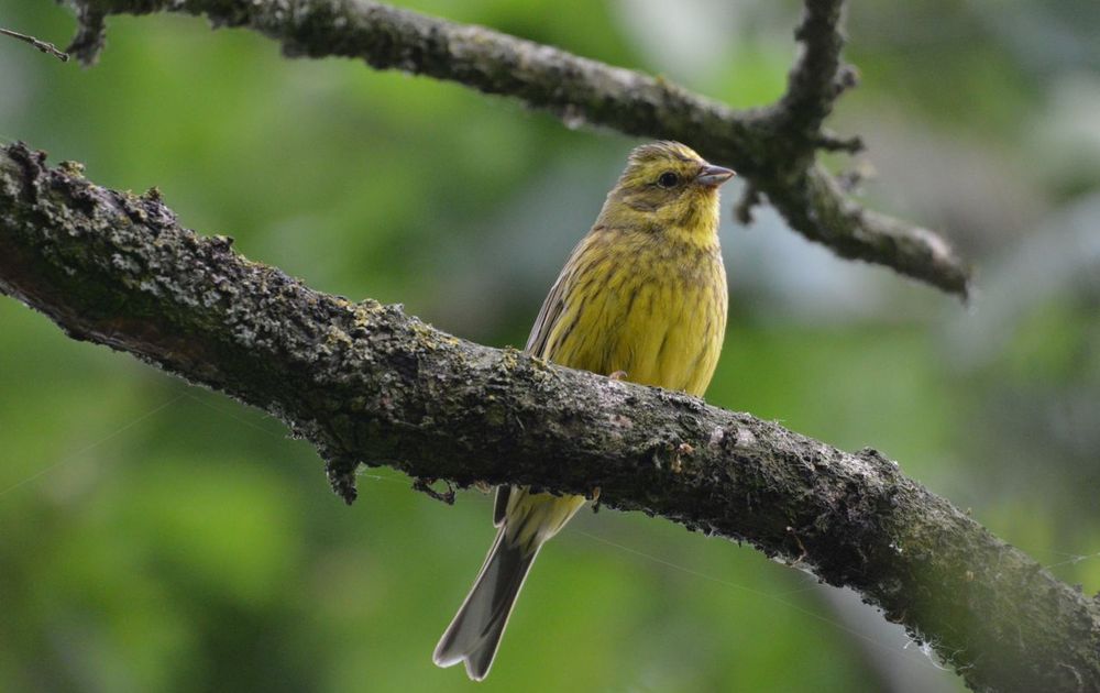 Helemaal ontspannen zat deze geelgors de omgeving te bekijken.