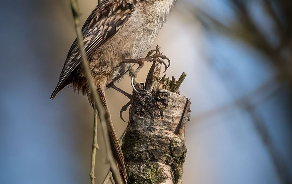 500mm, 1/1600sec, f5.6, iso450 Meestal als ik een boomkruiper tegenkom, verdwijnt ie net aan de andere kant van de boom of zit toevallig aan de donkere schaduwkant van de boomstam. Maar nu had ie de top van de boomstronk bereikt en zat net lang genoeg stil voor een profiel foto.