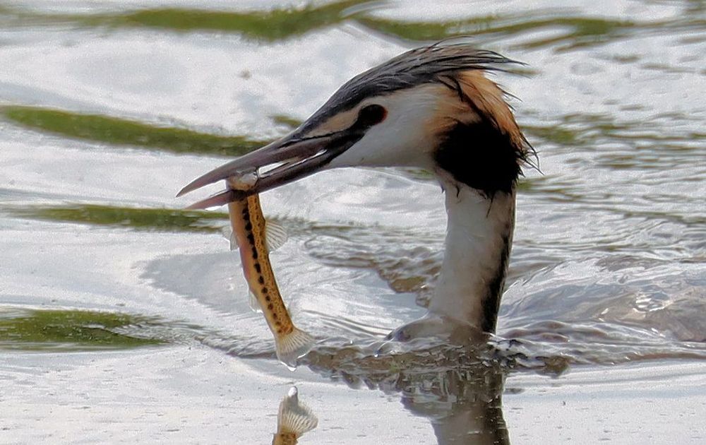 Thuis, in de poldersloot zijn het vooral de enorme karpers die zich laten zien en opvallen. Een mooi getekende vis zoals op de foto, de Kleine Modderkruiper zie je alleen in de bek van een Fuut.