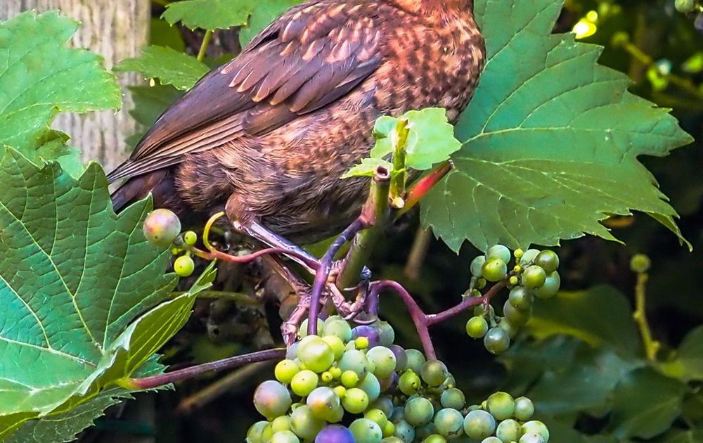 merel pikt een druifje mee