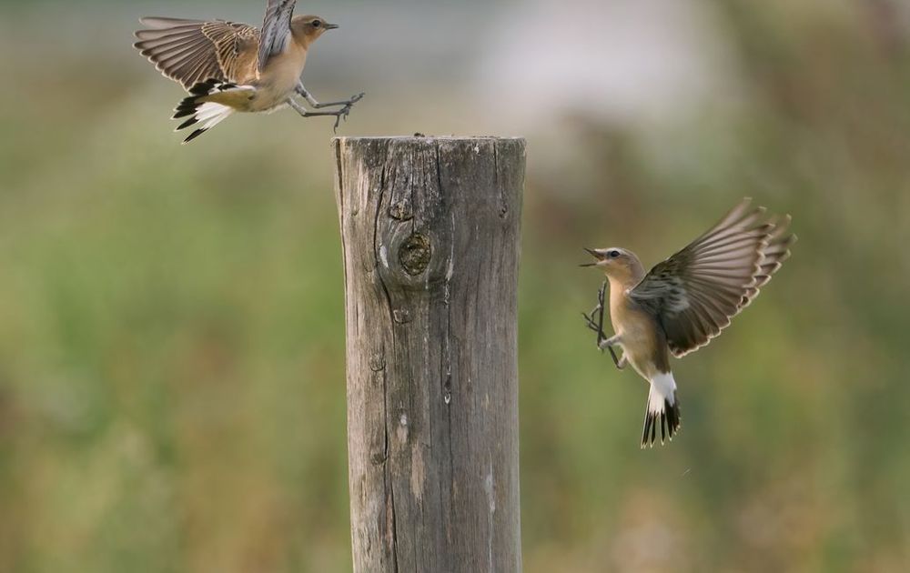 Leuk om te zien hoe twee Tapuiten beiden hetzelfde uitkijkpunt willen veroveren.