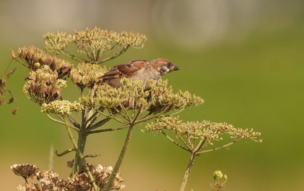 Een jonge ringmus had mooi plekje uitgezocht voor een foto.
