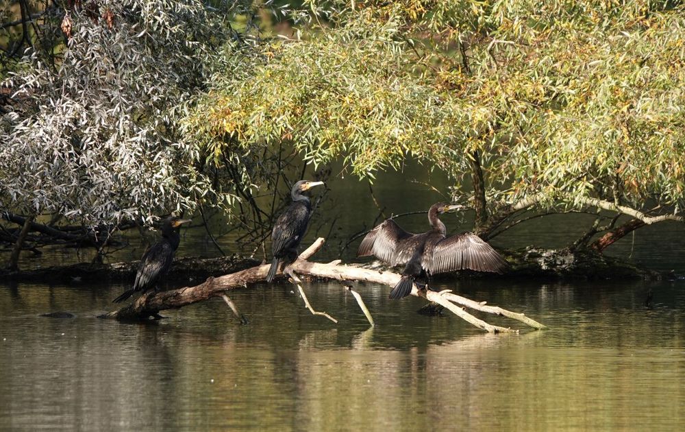 Tijdens een wandeling bij de anstelvallei zag ik een kolonie aalscholvers, deze drie zaten lekker in het herfstzonnetje.