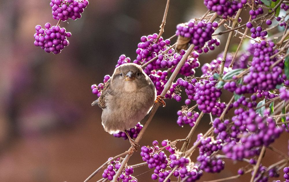 Een van de vele mussen die in de tuin komen eten en lekker uitrusten 😃