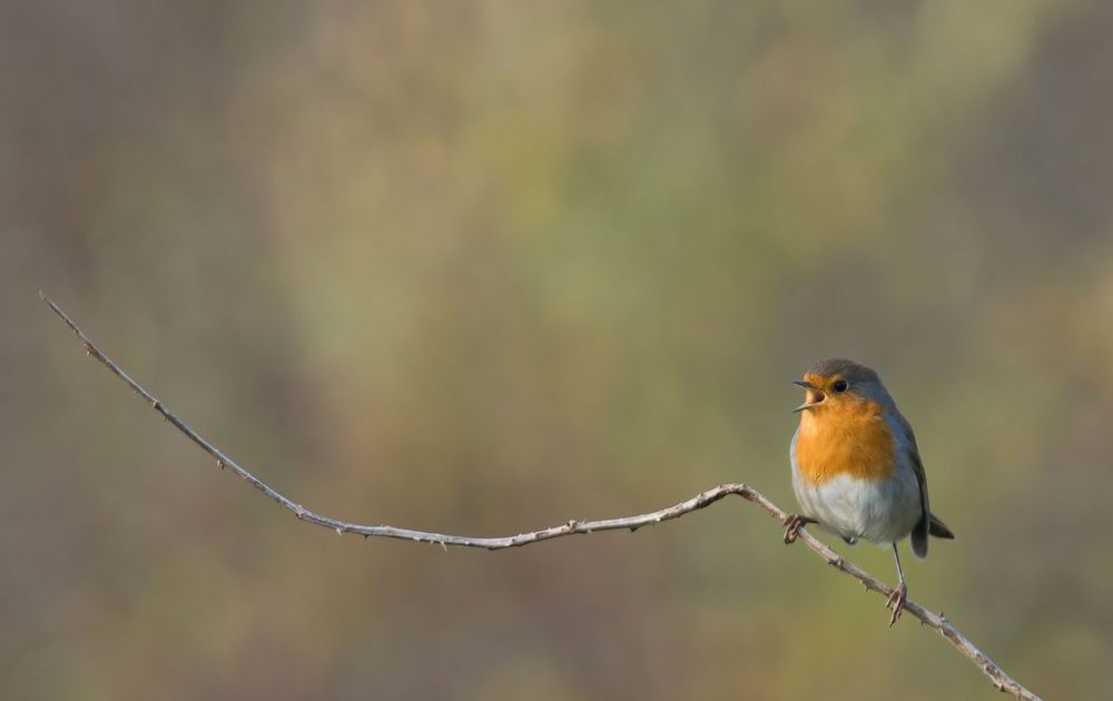 Dit zingende roodborstje zat voor een mooie struik waardoor ik deze prachtige gekleurde bokeh kreeg.