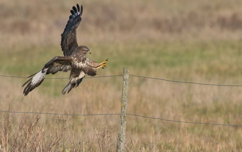Deze buizerd kwam mooi aanvliegen en ging prachtig landen op dit paaltje.