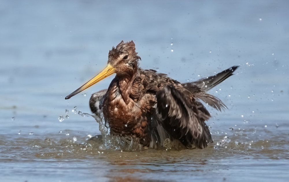 Een frisse duik het nieuwe jaar 2023 in. De grutto houdt er wel van. Wommels, 17 mei 2022