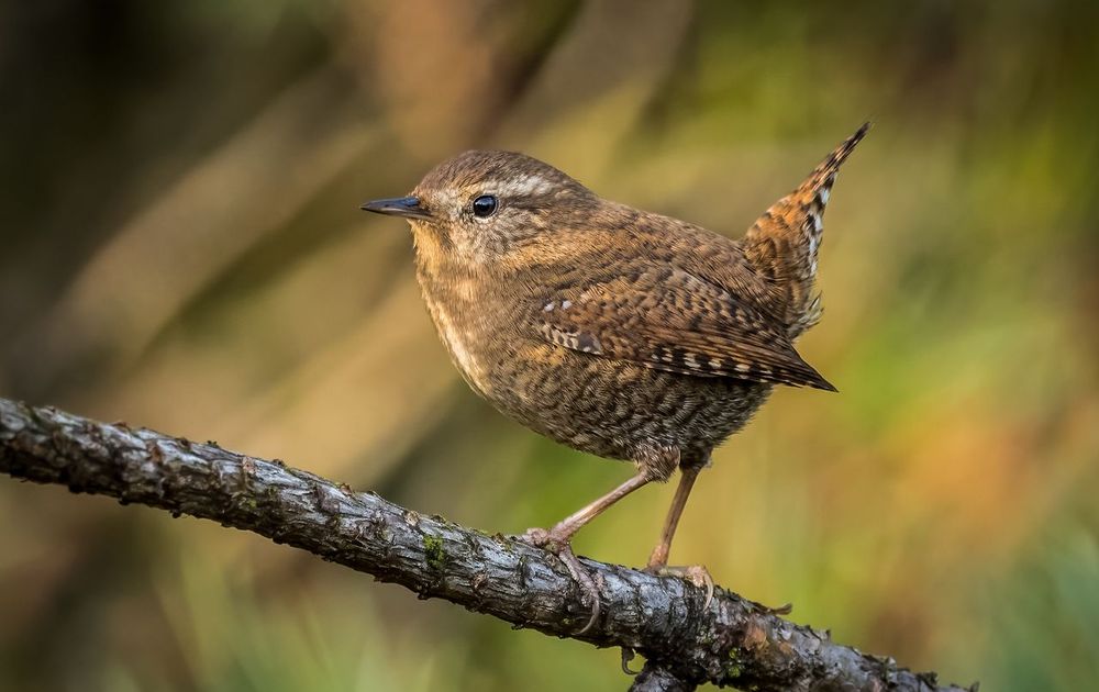 500mm, 1/1000sec, f5.6, iso 2000. Tegen een achtergrond van herfstkleuren nam deze Winterkoning een pose aan waarbij het parmantige rechtopstaande staartje mooi uitkwam.