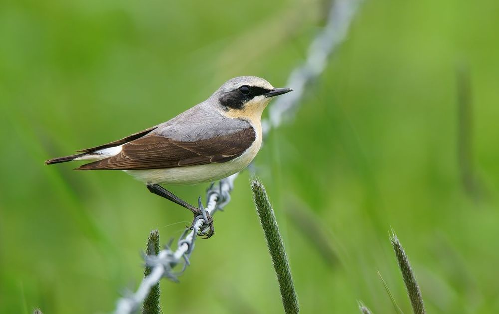 Van af een draad (of paaltje) zoekt de tapuit naar insecten.