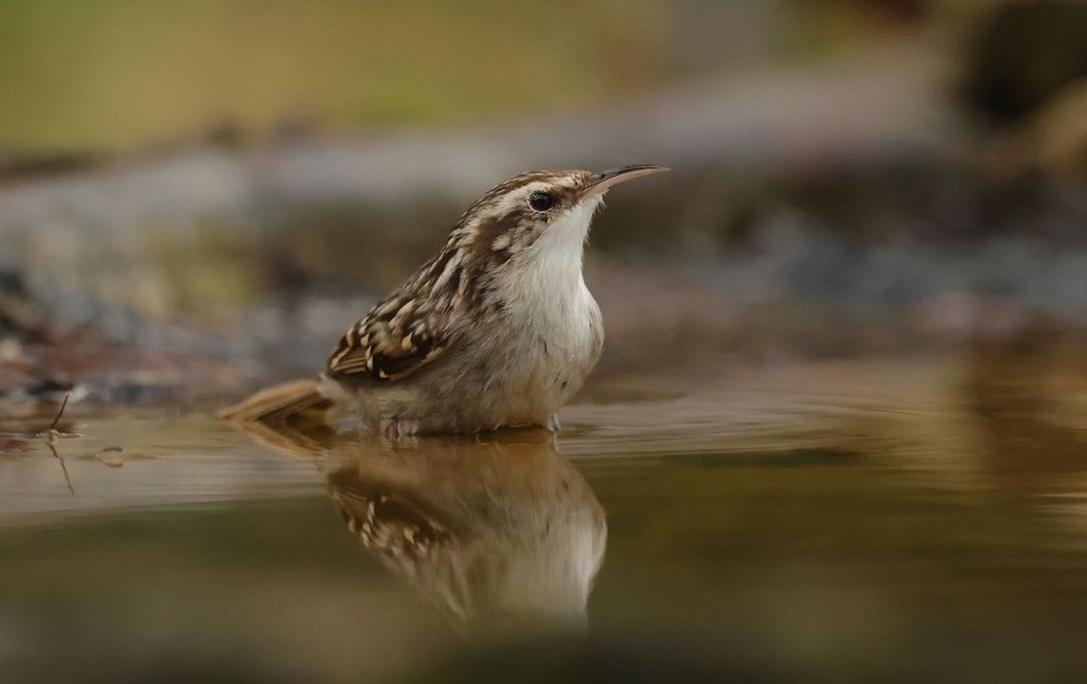 Boomkruiper gaat ineens de vijver in met zijn pootjes en wilde gaan badderen maar schrok van iets en vloog weg