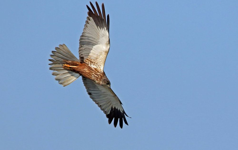 Kiekendief zoekt een geschikte plaats om een nest te bouwen.