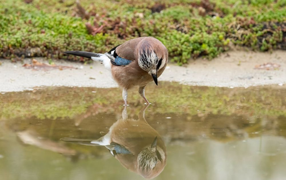 Deze gaai keek zo in het water van: Wie is de mooiste...
