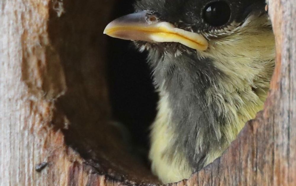 Pasgeboren koolmeesje op het balkon 3 hoog klaar om de weide wereld te ontdekken in Oosterhout