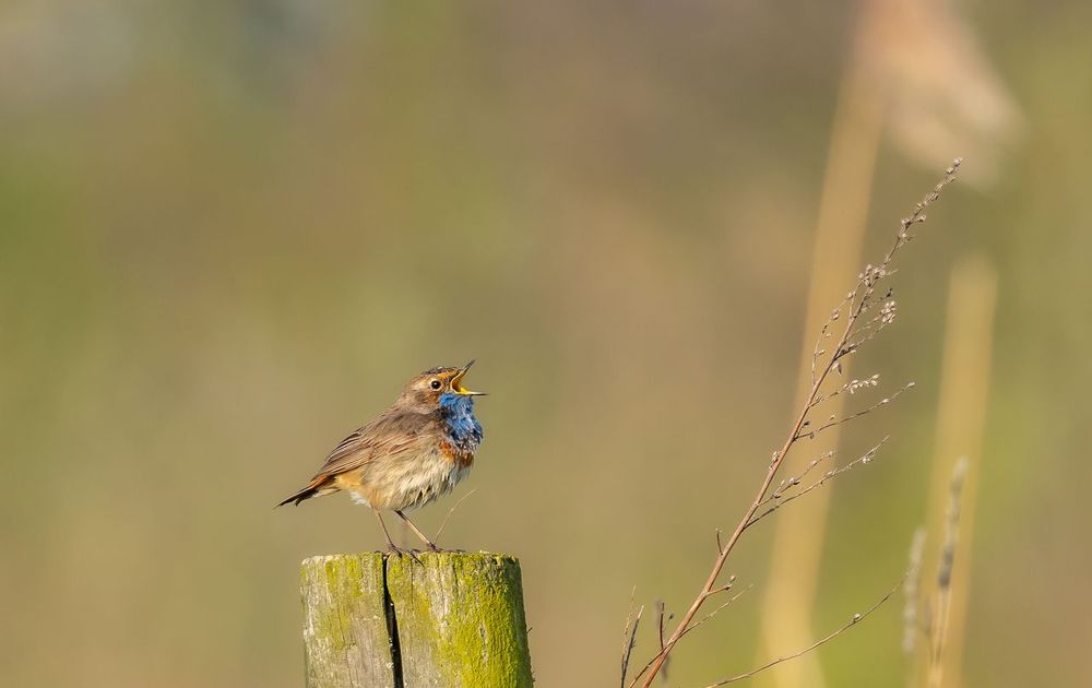 Op zoek naar de blauwborst liet deze man zich mooi fotograferen, zingend uit volle borst