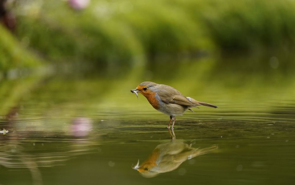 Voor mij de eerste keer dat ik een roodborstje een visje ziet eten