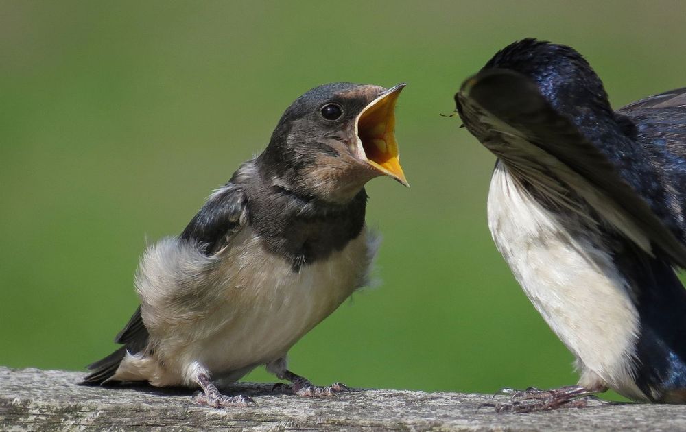 Ouders vlogen af en aan om hun jongen te voeren.
