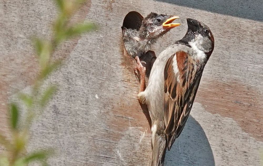 Voedertijd, eigenlijk gaat het de hele dag door, we hebben 13 nestkasten voor de huismussen en ze zijn allemaal vol, hoe mooi is dat.....
