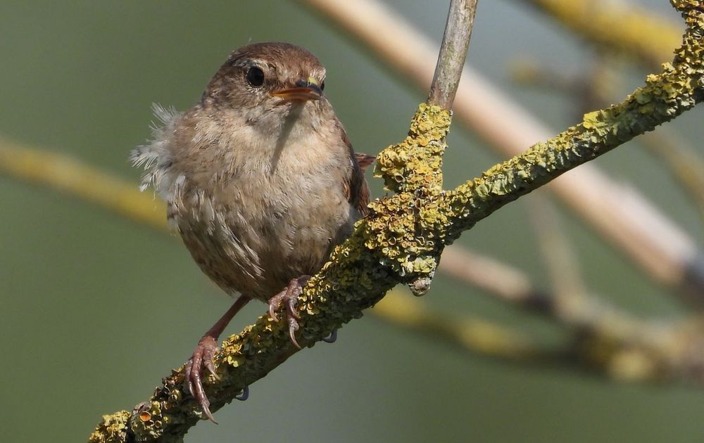 Het waaide hard en deze winterkoning trachtte een lekker snackje te vangen. De bladluis had de perfecte schuilplaats gevonden; bovenop de snavel van de winterkoning; met 2 handjes houdt ie zich nog vast...