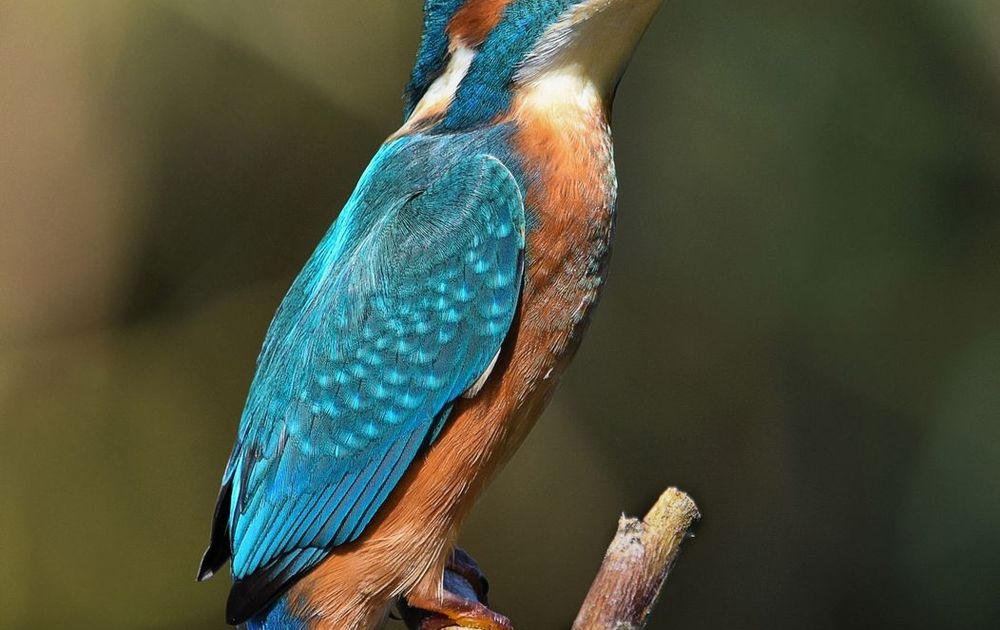 Een prachtige ijsvogel landde op een tak voor de schuilhut waar ik in zat. Hij was oplettend voor gevaar, vandaar dat hij omhoog kijkt.