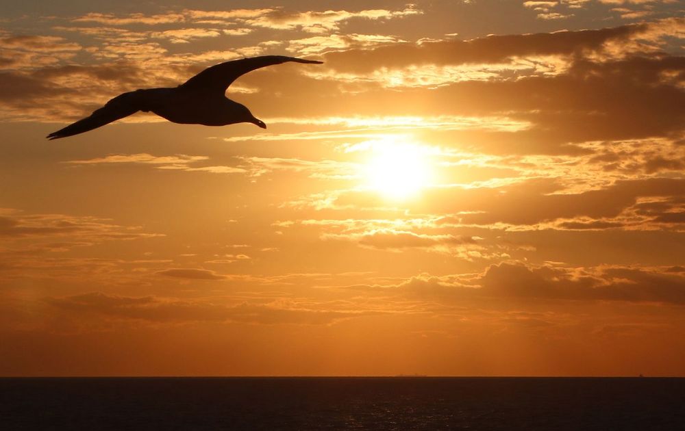 Veel zwevende meeuwen bij ondergaande zon na storm 2023-08-06 in Raversyde (Oostende)
