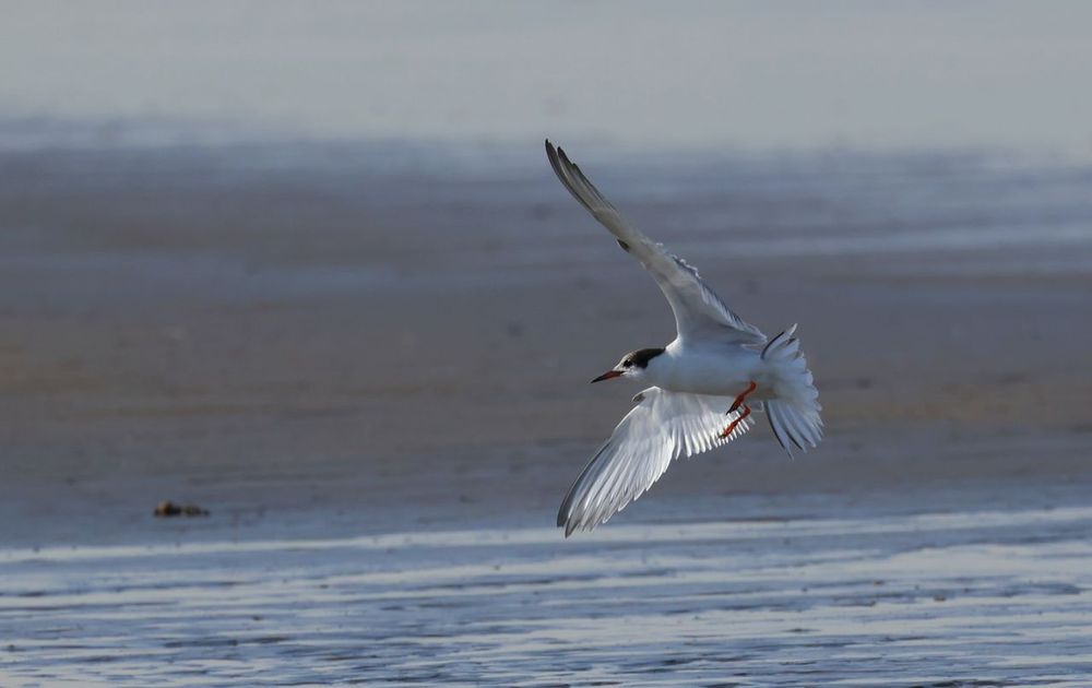 Langzaamaan is het een komen en gaan van badgasten aan het strand. Badgasten zoals steltlopers, meeuwen en sterns rusten, foerageren en gaan weer verder op hun tocht naar voor jonge vogels het onbekende. Kenmerk van het gast zijn is tenslotte de tijdelijkheid. Als de Visdief op de foto de kustlijn volgt heeft de vogel zijn voedselpakket binnen handbereik.
