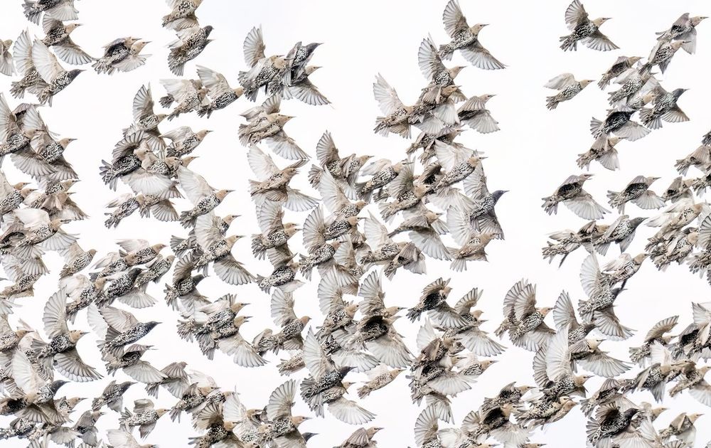 Ik beleefde een onvergetelijk moment toen er een zwerm overwegend jonge spreeuwen vlak over me heen vloog. Gelukkig had ik ze aan zien komen dus ik had de camera paraat!