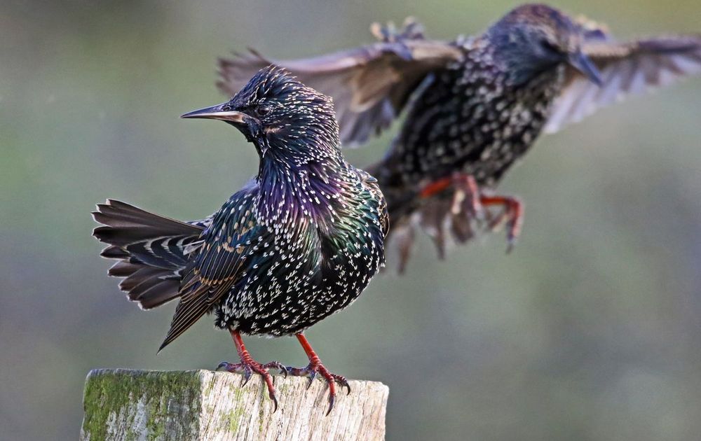 In de zon komen de kleuren van een spreeuw tevoorschijn.