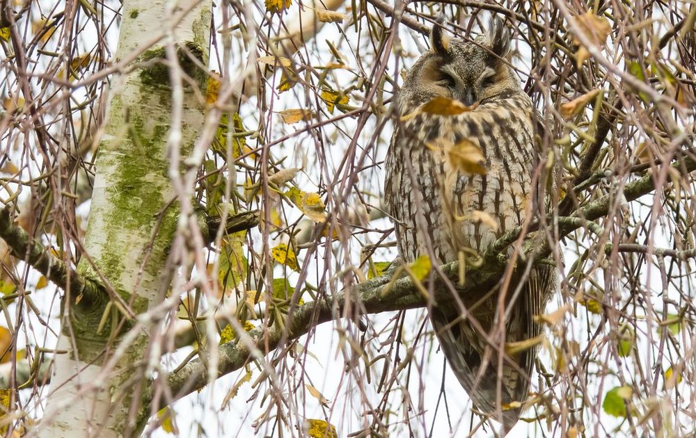 Op waarnemingen had ik gezien dat er een ransuil in de buurt zat. Toen ik er aankwam zaten er 2 in een berkenboom, waarvan er 1 goed zichtbaar was. De berkenboom stond in een tuin, maar via het parkeerterrein kon ik deze fotograferen.