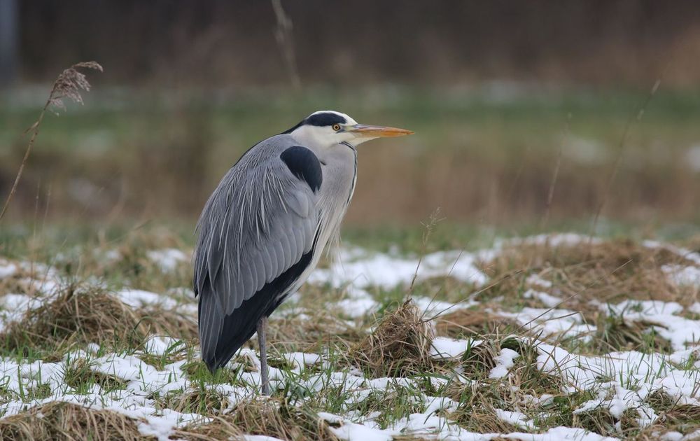De reiger is wat ineen gedoken. Wellicht om zo wat warmer te blijven.