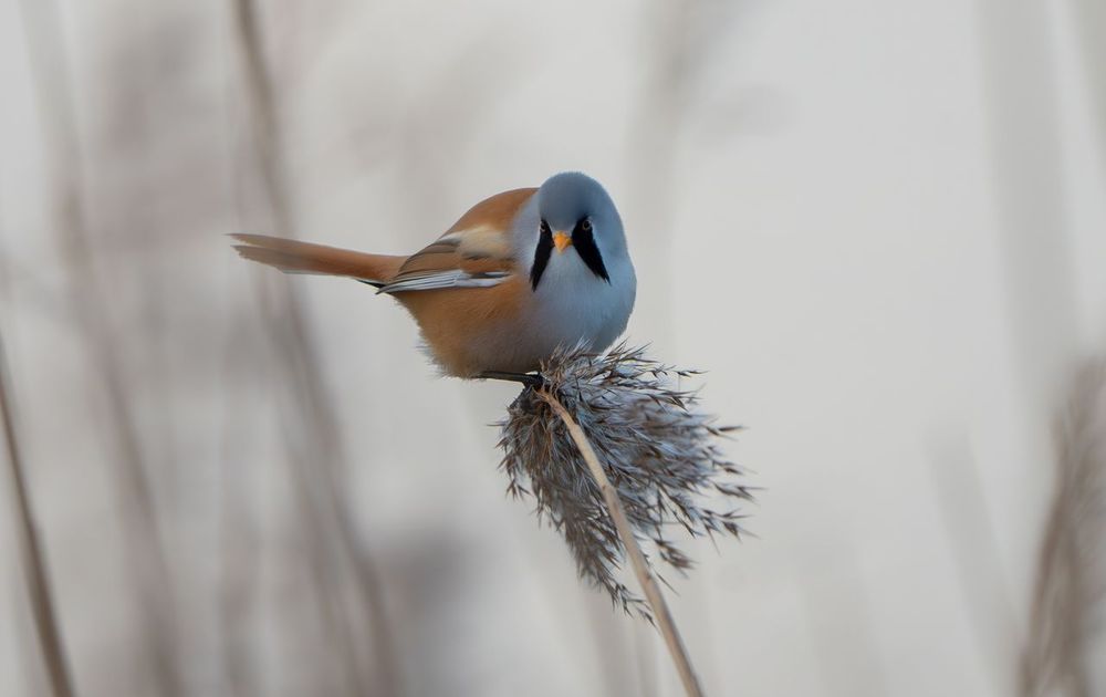 Baardman op rietstengel in Volgermeerpolder bij Broek in Waterland