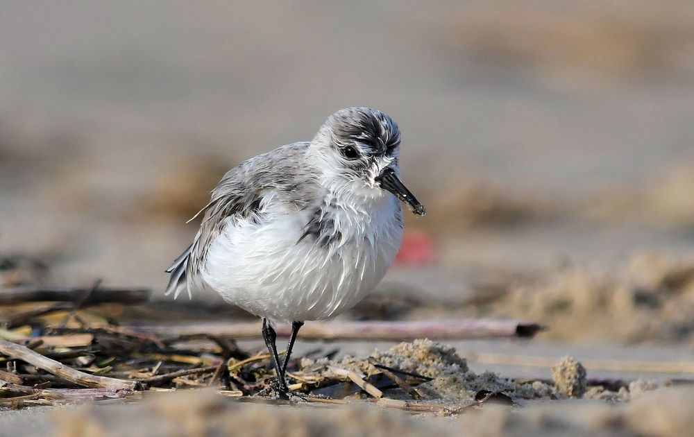 Drieteentje was verrast door golfje en was nog niet goed droog!