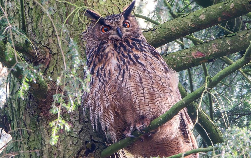 Waarom de oehoe zich in het Zandhovebos ophoudt is mij een raadsel. Een klein bos waarin druk gewandeld en gerecreƫerd wordt. En dan ook nog op zoek naar een partner, want soms roepend. Gisteren toen ik aan kwam lopen heb ik dat nog net meegemaakt. Dat zou toch wat zijn, jonge oehoe's in het Zandhovebos... Zwolle, 1 maart 2024