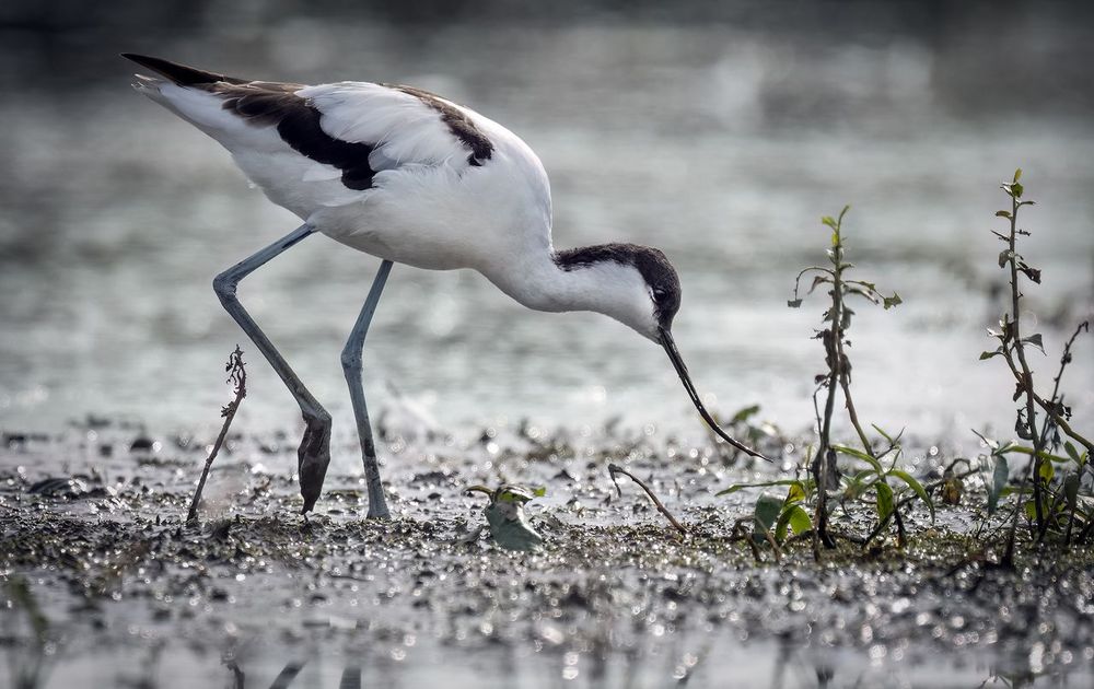 500mm, 1/3200sec, f5.6, iso 400. Verscholen in een rietkraag zag ik dit exemplaar al fouragerend dichterbij komen. De kluut was zo gefocused op het water dat ie mij niet heeft opgemerkt, zelfs niet toen ik afdrukte.
