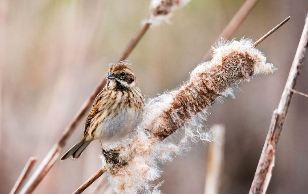 Dit rietgors vrouwtje vond het even spannend toen ik dichterbij kwam staan, maar al snel vond ze dat geen bedreiging vormde. Ik kon op gepaste afstand toekijken hoe ze de rietsigaar vakkundig sloopte.