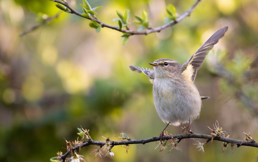 Deze tjiftjaf reageerde met flapperende vleugels op het gezang van een soortgenoot. Niet veel later kwam de tweede tjiftjaf erbij en volgde er een korte paring. Ja, het is lente!