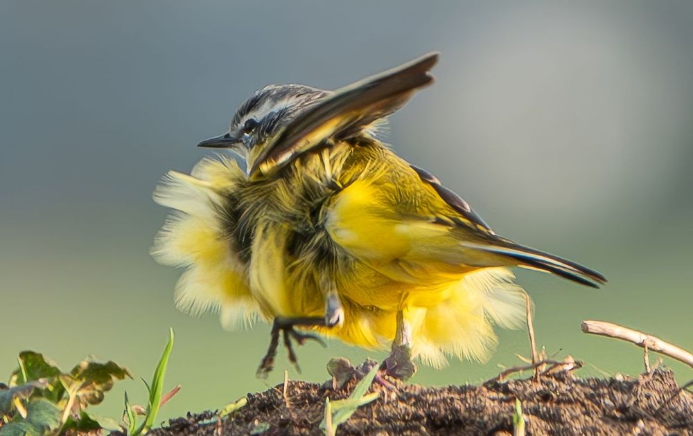 De gele kwikstaart heeft net uitgebreid z'n veren onderhouden.
