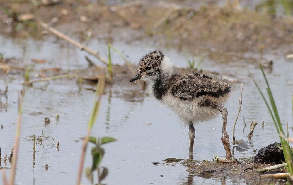 Een kleine aan de wandel en een waakzame moeder nabij.