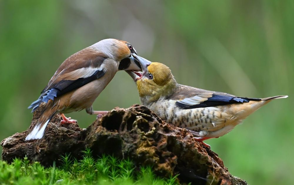 Appelvink man is zijn jong aan het voeren, ook een mannetje.