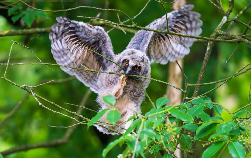 We kwamen net aan bij ons vakantiehuisje toen we deze jonge ransuil in de takken zagen klauteren. Een echte takkelaar! Het uilskuiken heeft ons het hele weekend laten weten dat hij nog in de buurt was ;)