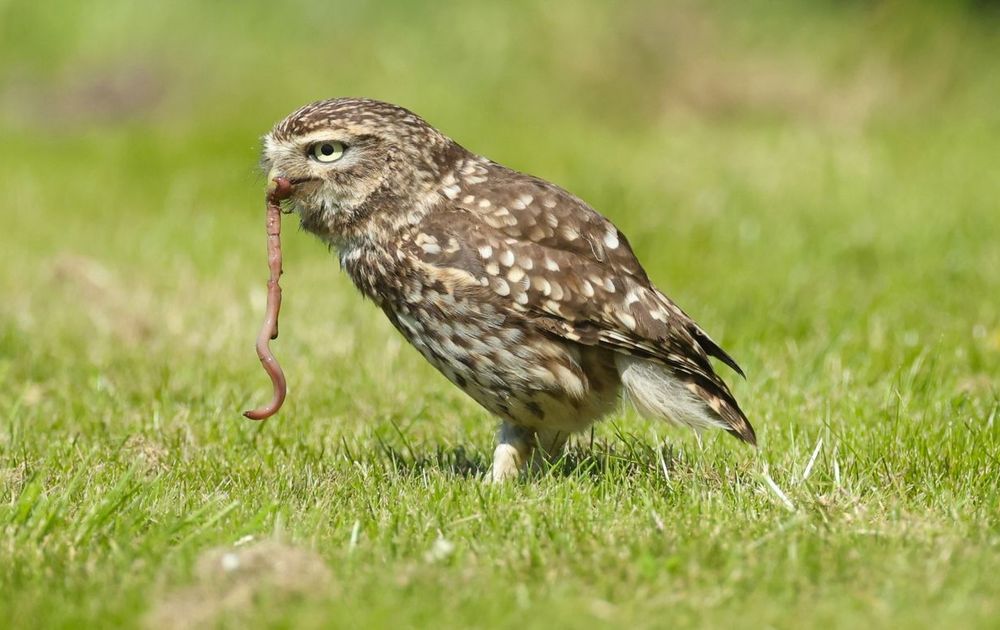 door de natte lente zijn de steenuilen genoodzaakt om i.p.v muizen meer regenwormen aan de jongen te voeren