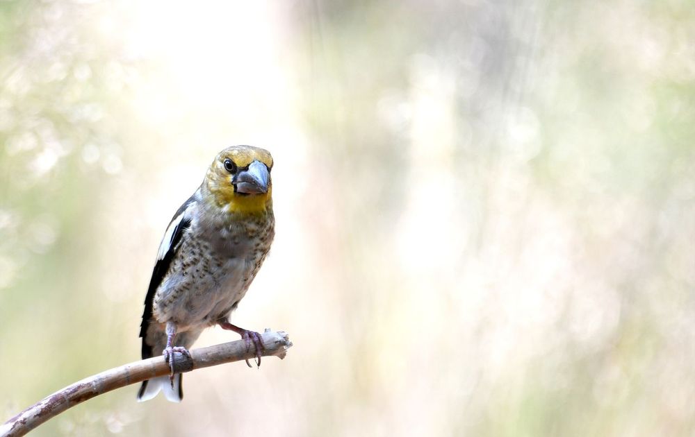 Jonge Appelvink tegen een achtergrond van hoog gras.