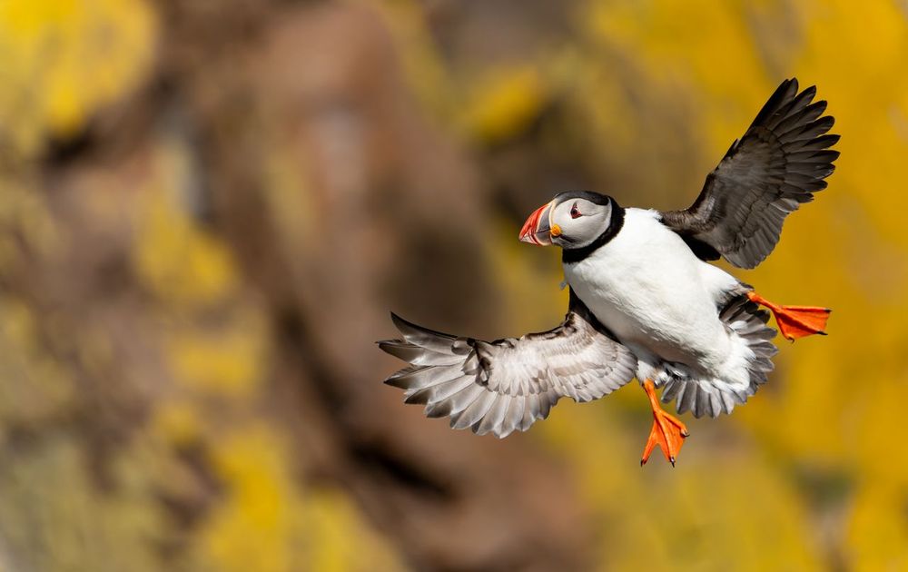 Bij het haventje van Borgarfjörður eystri in IJsland kan je fantastisch papegaaiduikers van dichtbij fotograferen. Het is een leuke uitdaging om ze vast te leggen wanneer ze aan komen vliegen. Deze papegaaiduiker schatte de landing verkeerd in en moest plotseling van richting veranderen, wat voor een bijzondere pose zorgde.