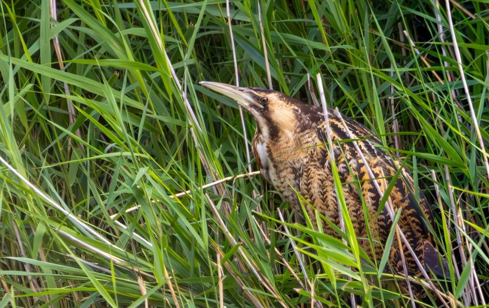 In het voorjaar de roerdomp gehoord, maar niet gezien. En nu stond hij daar langs de rand van het riet en konden we hem minuten lang observeren.