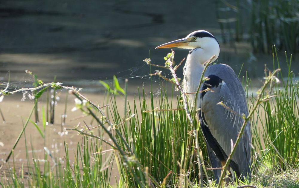 Vorig jaar waren de reigers in het natuurgebied rondom het Paterswoldsemeer / Hoornsediep in Groningen niet te tellen. Dit jaar zijn het er maar heel weinig. Deze reiger zat naar het water te turen om een visje of kikker te vangen. Hij had mij (nog) niet gezien, en ik hem (nog) niet. Pas toen ik dichtbij was keek hij om, maar maakte totaal geen aanstalten om weg te vliegen. Ik maakte een foto en liep snel weer de andere kant uit om hem verder niet te storen.