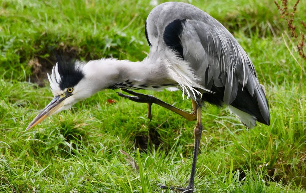 onze eigen blauwe reiger in een ietwat ongebruikelijke pose kunnen vastleggen
