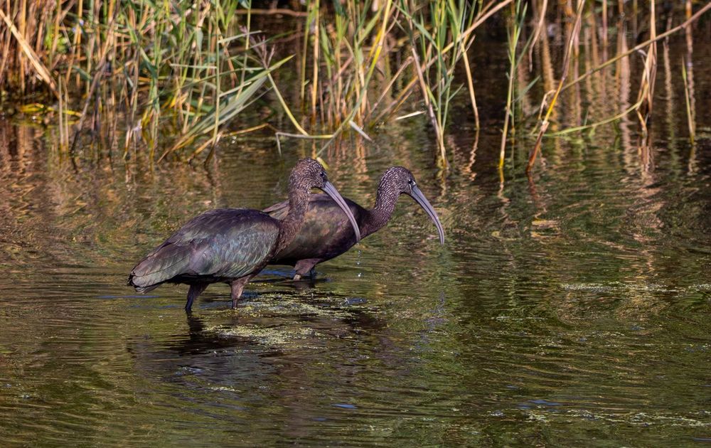 Ik zag deze twee zwarte ibissen heerlijk foerageren langs het riet. Het viel mij op dat ze niet eigenlijk zo groot zijn.