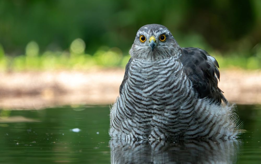 De sperwer overweegt een bad. Klazienaveen, 2 augustus 2024